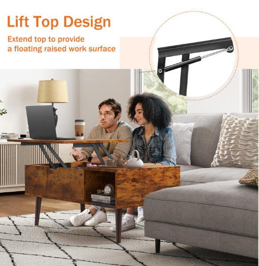 Sweet Furniture F Coffee Tables, Small Coffee Table with Storage Shelf and Hidden Compartment, Modern Wood Lift Top Coffee Table for Living Room, Office, Reception Room