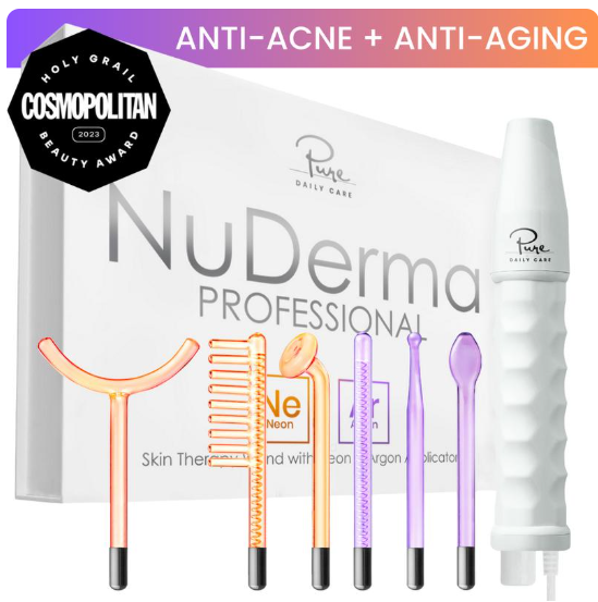 NuDerma Professional High Frequency Wand by Pure Daily Care with Argon & Neon Applicators Anti-Aging and Anti-Acne
